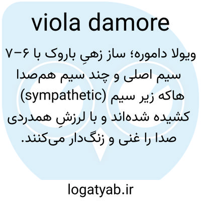 ویولا داموره؛ ساز زهیِ باروک با ۶–۷ سیم اصلی و چند سیم هم‌صدا (sympathetic) که زیر سیم‌ها کشیده شده‌اند و با لرزشِ همدردی صدا را غنی و زنگ‌دار می‌کنند.
