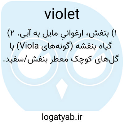 ۱) بنفش، ارغوانیِ مایل به آبی. ۲) گیاه بنفشه (گونه‌های Viola) با گل‌های کوچک معطر بنفش/سفید.