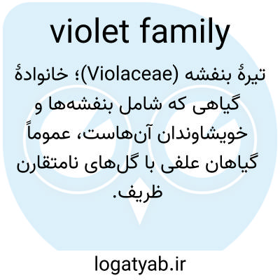 📌 خانواده‌ی گیاهی Violaceae، که با گیاهان علفی و برخی درختچه‌ها و درختان گرمسیری مشخص می‌شود و دارای برگ‌های متناوب و معمولاً ساده، گل‌های منفرد با پنج گلبرگ معمولاً نامنظم، گلبرگ پایینی اغلب خاردار، و یک کپسول توت‌فرنگی یا چند دانه‌ای است و شامل گل بنفشه، بنفشه هندی و گونه‌های متعدد بنفشه می‌شود.