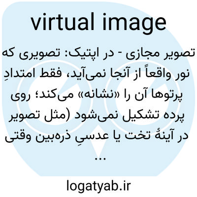 تصویر مجازی - در اپتیک: تصویری که نور واقعاً از آنجا نمی‌آید، فقط امتدادِ پرتوها آن را «نشانه» می‌کند؛ روی پرده تشکیل نمی‌شود (مثل تصویر در آینهٔ تخت یا عدسیِ ذره‌بین وقتی با آن از نزدیک می‌خوانی).