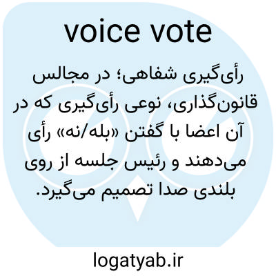 رأی‌گیری شفاهی؛ در مجالس قانون‌گذاری، نوعی رأی‌گیری که در آن اعضا با گفتن «بله/نه» رأی می‌دهند و رئیس جلسه از روی بلندی صدا تصمیم می‌گیرد.