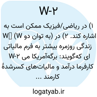 ۱) در ریاضی/فیزیک ممکن است به W² (W به توان دو) اشاره کند. ۲) در زندگی روزمره بیشتر به فرم مالیاتی W-2 آمریکا می‌گویند: برگه‌ای که کارفرما درآمد و مالیات‌های کسرشدهٔ کارمند را روی آن گزارش می‌کند.