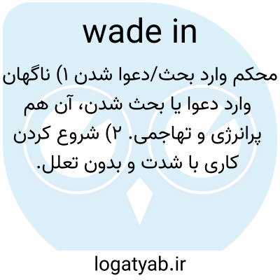 📌 همچنین، به درون آب رفتن. با قاطعیت و انرژی در آب فرو رفتن، شروع کردن یا حمله کردن، مانند عبارت She was been into that pile of correspondence. این اصطلاح، ورود به آب را به شروع کردن عملی تبدیل میکند. [اواسط دهه ۱۸۰۰]