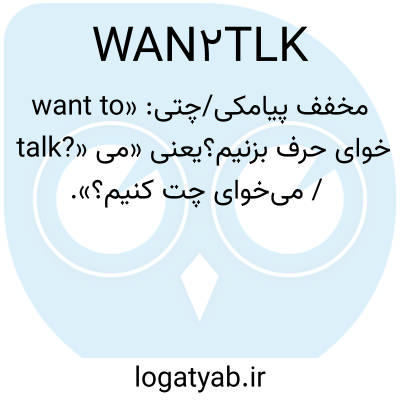 مخفف پیامکی/چتی: «want to talk?» یعنی «میخوای حرف بزنیم؟ / میخوای چت کنیم؟».