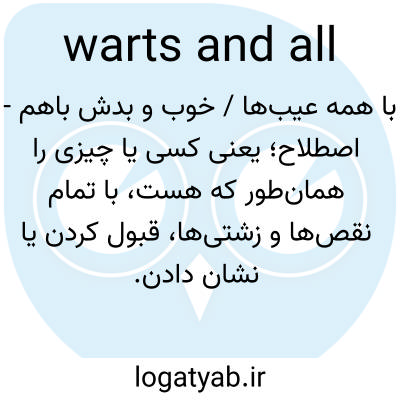 📌 شامل تمام لکهها، ایرادات و کاستیها، مانند جملهی «به طرز نامعقولی تصمیم گرفتند خانه را با زگیلها و همه چیز بخرند». این عبارت ظاهراً به دستور الیور کرامول به نقاش پرتره، سر پیتر لیلی، اشاره دارد که «تمام این ناهمواریها، جوشها، زگیلها و همه چیز را همانطور که من میبینم، در نظر بگیر، وگرنه من هرگز یک ریال هم برای آن نمیپردازم.» [نیمه اول دهه ۱۶۰۰]