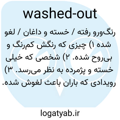 رنگ‌ورو رفته / خسته و داغان / لغو شده ۱) چیزی که رنگش کم‌رنگ و بی‌روح شده. 2) شخصی که خیلی خسته و پژمرده به نظر می‌رسد. ۳) رویدادی که باران باعث لغوش شده.