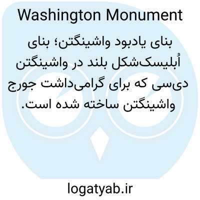 📌 سازه‌ای در مرکز خرید واشنگتن، با ارتفاع بیش از پانصد فوت، که در قرن نوزدهم به افتخار جورج واشنگتن ساخته شده است. از نظر شکل، شبیه به یک ابلیسک است - یک ستون چهارضلعی با یک هرم در بالای آن.