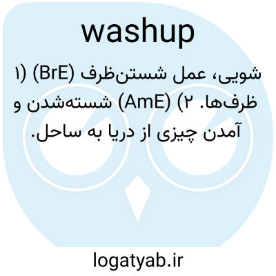 ۱) (BrE) ظرف‌شویی، عمل شستن ظرف‌ها. ۲) (AmE) شسته‌شدن و آمدن چیزی از دریا به ساحل.