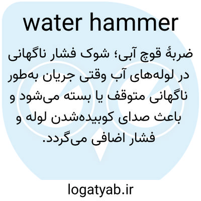 📌 ضربه مغزی و صدای همراه آن که هنگام توقف ناگهانی یا از دست دادن تکانه حجمی از آب در حال حرکت در لوله ایجاد میشود.