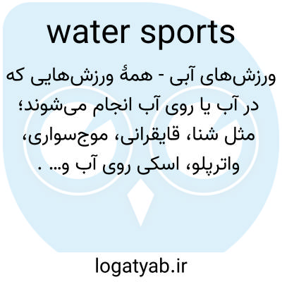 ورزش‌های آبی - همهٔ ورزش‌هایی که در آب یا روی آب انجام می‌شوند؛ مثل شنا، قایقرانی، موج‌سواری، واترپلو، اسکی روی آب و… .