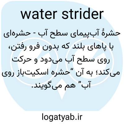 📌 هر یک از چندین حشره آبزی از خانواده Gerridae، که پاهای بلند و باریکی دارند که با مو پوشیده شده و این حشرات را قادر می‌سازد تا روی سطح آب به سرعت حرکت کنند.