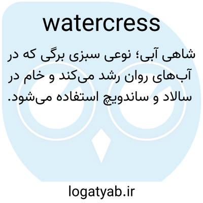 📌 نوعی شاهی، Nasturtium officinale، از خانواده خردل، که معمولاً در نهرهای زلال و جاری می‌روید و برگ‌های تندی دارد.