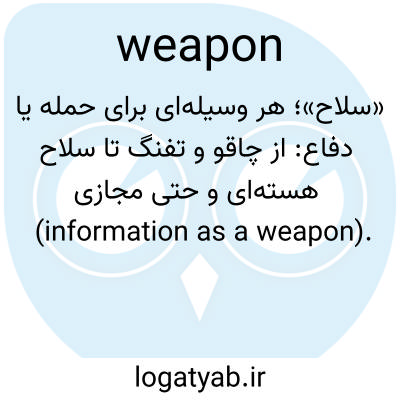 📌 هر ابزار یا وسیلهای که برای حمله یا دفاع در نبرد، مبارزه یا جنگ استفاده میشود، مانند شمشیر، تفنگ یا توپ.
