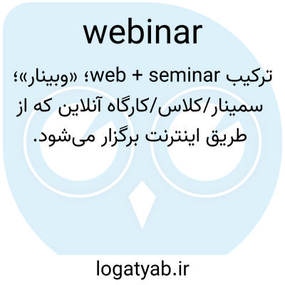 📌 سمینار یا ارائهای که در اینترنت برگزار میشود و به شرکتکنندگان در مکانهای مختلف اجازه میدهد تا ارائهدهنده را ببینند و صدای او را بشنوند، سؤال بپرسند و گاهی به نظرسنجیها پاسخ دهند.