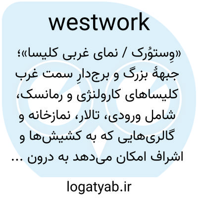 📌 (در معماری رومانسک آلمانی) نمای غربیِ عظیمِ کلیسا، که به صورت برج یا برجهایی در نظر گرفته میشود که شامل ورودی و هشتی در پایین و نمازخانهای در بالا است.