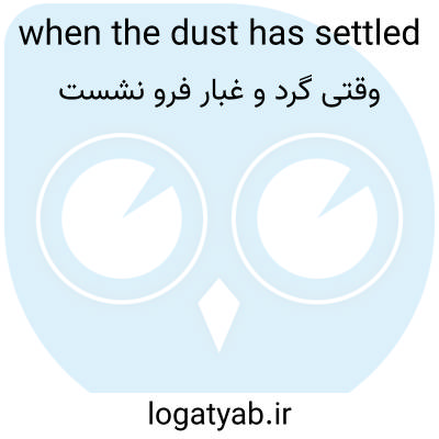 📌 همچنین،. وقتی اوضاع آرام شد، همانطور که در عبارت «ادغام کامل شد» آمده است، و وقتی گرد و غبار فرو نشست، می‌توانیم پروژه‌های جدید را شروع کنیم. این اصطلاح از گرد و غبار به معنای «آشوب» یا «اغتشاش» استفاده می‌کند، کاربردی که قدمت آن به نیمه اول دهه ۱۸۰۰ میلادی برمی‌گردد.