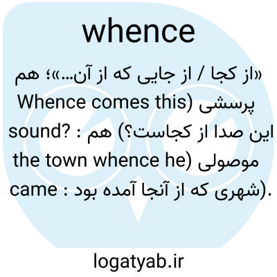 «از کجا / از جایی که از آن…»؛ هم پرسشی (Whence comes this sound? : این صدا از کجاست؟) هم موصولی (the town whence he came : شهری که از آنجا آمده بود).