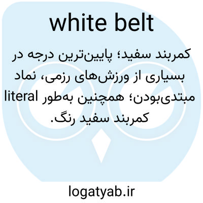 📌 کمربند پارچهای سفیدی که توسط یک مبتدی در یکی از هنرهای رزمی، مانند جودو یا کاراته، پوشیده میشود.