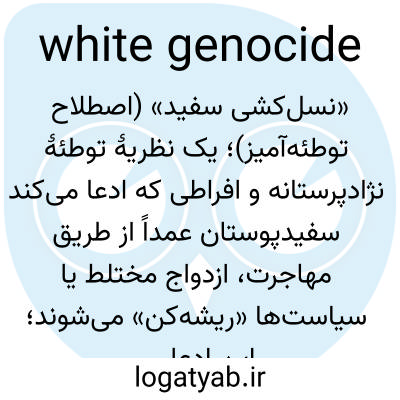 📌 مجموعهای از نظریههای توطئه که ادعا میکنند سفیدپوستان از چندین جبهه، از جمله مهاجرت هماهنگشدهی غیرسفیدپوستان، ازدواجهای بین نژادی، تصرف زمین یا خشونت علیه سفیدپوستان، مورد حمله قرار گرفتهاند، با هدف پایان دادن به نژاد سفید متمایز و تسلط فرهنگی اروپاییان سفیدپوست.