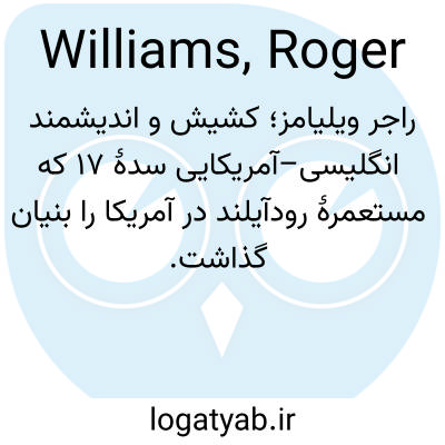 📌 ویلیامز، رهبر مذهبی پیوریتن قرن هفدهم، متولد انگلستان. پس از آنکه به دلیل دیدگاههای مذهبی مداراجویانهاش از ماساچوست اخراج شد، مستعمره رود آیلند را به عنوان مکانی با تحمل کامل مذهبی تأسیس کرد.