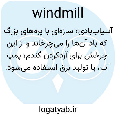 📌 هر یک از ماشینهای مختلف برای آسیاب کردن، پمپاژ و غیره، که توسط نیروی باد که بر روی تعدادی پره یا بادبان عمل میکند، به حرکت در میآید.
