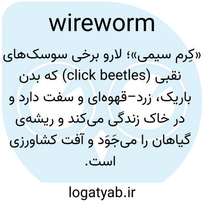 📌 هر یک از لاروهای باریک و سختتن سوسکهای کلیک، که بسیاری از آنها در زیر زمین زندگی میکنند و از ریشه گیاهان تغذیه میکنند.