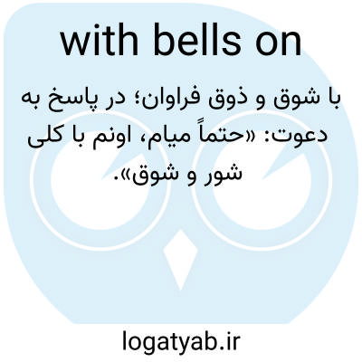 📌 آماده برای جشن گرفتن، مشتاقانه، مانند جملهی «البته که خواهم آمد؛ من آنجا خواهم بود با زنگولههایم». این عبارت استعاری به تزئین خود یا لباسهایمان با زنگولههای کوچک برای یک اجرا یا مناسبت خاص اشاره دارد. یک شعر کودکانه معروف میگوید: «بانوی زیبایی را ببین که سوار بر اسب سفیدی است، حلقههایی بر انگشتان و زنگولههایی بر انگشتان پایش، و هر جا که میرود موسیقی خواهد داشت» (در گارلند اثر گامر گورتون، ۱۷۸۴).