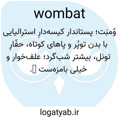 📌 هر یک از چندین کیسهدار علفخوار، نقبزن و قویهیکل از خانوادهی وُمباتیده (Vombatidae) در استرالیا، تقریباً به اندازهی یک گورکن.