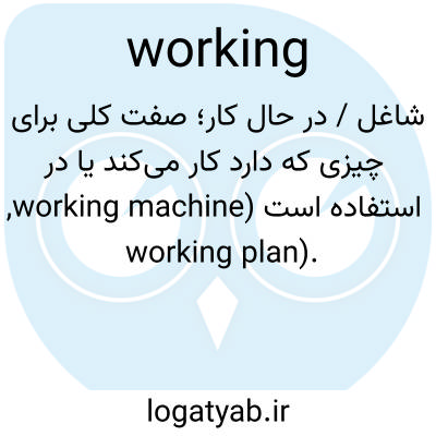 شاغل / در حال کار؛ صفت کلی برای چیزی که دارد کار می‌کند یا در استفاده است (working machine, working plan).