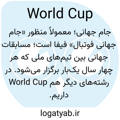جام جهانی؛ معمولاً منظور «جام جهانی فوتبال» فیفا است؛ مسابقات جهانی بین تیم‌های ملی که هر چهار سال یک‌بار برگزار می‌شود. در رشته‌های دیگر هم World Cup داریم.