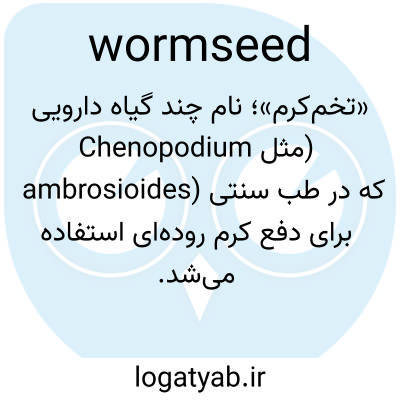 📌 سرگلهای خشک و غنچهنشدهی افسنطین، Artemisia cina Levant wormseed، یا میوهی برخی از گیاهان خانوادهی غازپا، بهویژه Chenopodium anthelminticum (یا C. ambrosioides)، چای مکزیکی یا افسنطین آمریکایی، که به عنوان داروی ضد کرم استفاده میشود.