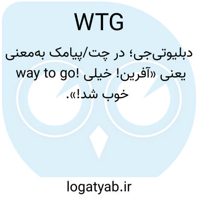 دبلیو‌تی‌جی؛ در چت/پیامک به‌معنی way to go! یعنی «آفرین! خیلی خوب شد!».