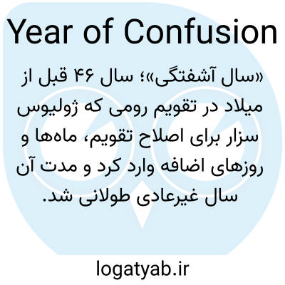 «سال آشفتگی»؛ سال ۴۶ قبل از میلاد در تقویم رومی که ژولیوس سزار برای اصلاح تقویم، ماه‌ها و روزهای اضافه وارد کرد و مدت آن سال غیرعادی طولانی شد.