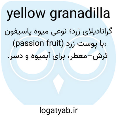 گرانادیلای زرد؛ نوعی میوه پاسيفون (passion fruit) با پوست زرد، ترش–معطر، برای آبمیوه و دسر.
