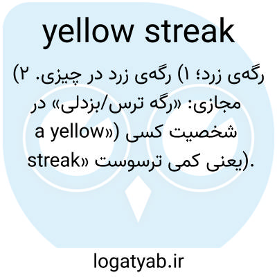 رگه‌ی زرد؛ ۱) رگه‌ی زرد در چیزی. ۲) مجازی: «رگه ترس/بزدلی» در شخصیت کسی («a yellow streak» یعنی کمی ترسوست).