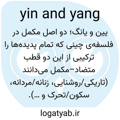 📌 مربوط به یا مبتنی بر دو اصل متضاد در فلسفه و مذهب چینی، یکی منفی، تاریک و زنانه (یین) و دیگری مثبت، روشن و مردانه (یانگ).