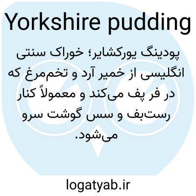 📌 پودینگی که از خمیر بدون شکر آرد، نمک، تخممرغ و شیر درست میشود و هنگام کباب شدن گوشت، زیر آن پخته میشود تا ترشحات گوشت گرفته شود یا جداگانه با مقدار کمی ترشحات گوشت پخته میشود.