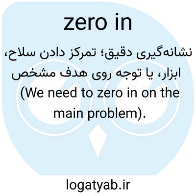 نشانه‌گیری دقیق؛ تمرکز دادن سلاح، ابزار، یا توجه روی هدف مشخص (We need to zero in on the main problem).
