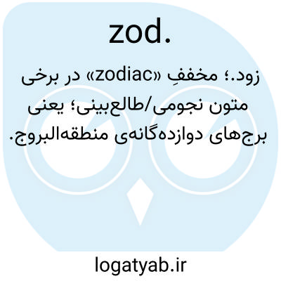 زود.؛ مخففِ «zodiac» در برخی متون نجومی/طالع‌بینی؛ یعنی برج‌های دوازده‌گانه‌ی منطقه‌البروج.