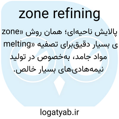 📌 تکنیکی برای تولید جامدات با خلوص بسیار بالا، به ویژه برای استفاده در نیمهرساناها. ماده، به شکل میله، در یک ناحیه کوچک ذوب میشود که در امتداد جامد عبور داده میشود. ناخالصیها در مذاب متمرکز شده و به انتهای میله منتقل میشوند.