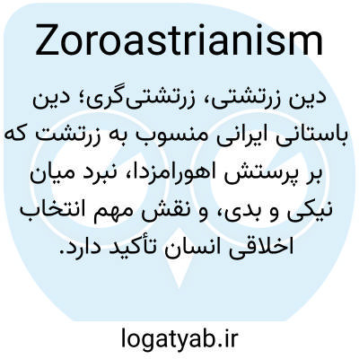 📌 دینی ایرانی که حدود ۶۰۰ سال پیش از میلاد توسط زرتشت بنیان نهاده شد و باورهای اصلی آن بر وجود یک خدای برتر، اهورا مزدا، و نبرد کیهانی بین روح خیر، سپنتا مینیو، و روح شر، انگره مینیو، استوار است.