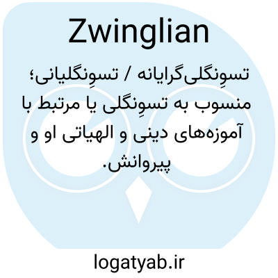 📌 مربوط به یا مربوط به اولریش زوینگلی یا آموزههای او، که تا حد زیادی با آموزههای لوتر مطابقت دارد و تفسیری متمایز از عشای ربانی ارائه میدهد.