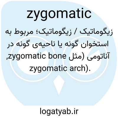 زیگوما‌تیک / زیگوماتیک؛ مربوط به استخوان گونه یا ناحیه‌ی گونه در آناتومی (مثل zygomatic bone, zygomatic arch).