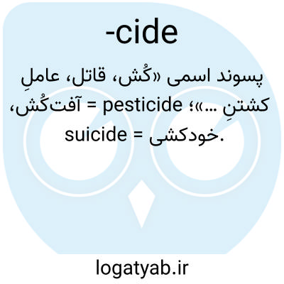 پسوند اسمی «کُش، قاتل، عاملِ کشتنِ …»؛ pesticide = آفت‌کُش، suicide = خودکشی.