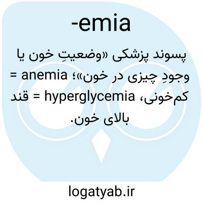 پسوند پزشکی «وضعیتِ خون یا وجودِ چیزی در خون»؛ anemia = کم‌خونی، hyperglycemia = قند بالای خون.