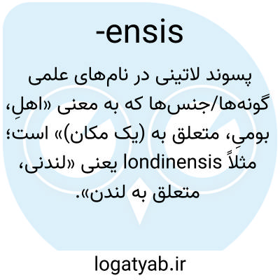 📌 پسوند صفتی لاتین به معنای «مربوط به» یا «ریشه در» که در ضرب سکههای علمی مدرن لاتین، به ویژه مشتقات نام مکانها، استفاده میشود.