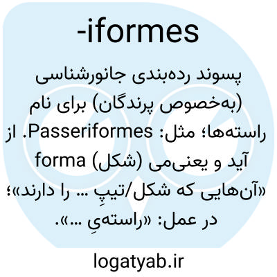 📌 یک شکل ترکیبی که در نام‌های طبقه‌بندی حیوانات، به ویژه راسته‌های پرندگان و ماهی‌ها، استفاده می‌شود و به معنی «دارای شکل ...» است.