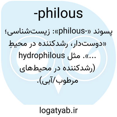 پسوند «-philous»: زیست‌شناسی؛ «دوست‌دار، رشدکننده در محیطِ ...». مثل hydrophilous (رشدکننده در محیط‌های مرطوب/آبی).