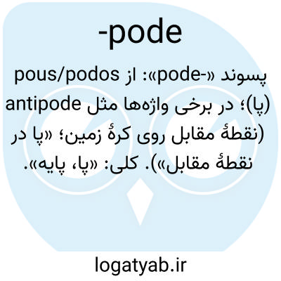 پسوند «-pode»: از pous/podos (پا)؛ در برخی واژه‌ها مثل antipode (نقطهٔ مقابل روی کرهٔ زمین؛ «پا در نقطهٔ مقابل»). کلی: «پا، پایه».