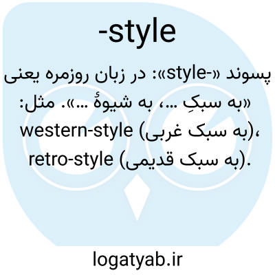 پسوند «-style»: در زبان روزمره یعنی «به سبکِ …، به شیوهٔ …». مثل: western-style (به سبک غربی)، retro-style (به سبک قدیمی).